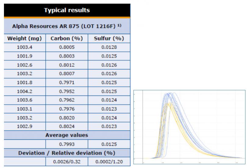 圖5 不銹鋼中的碳/硫成分含量測試結(jié)果