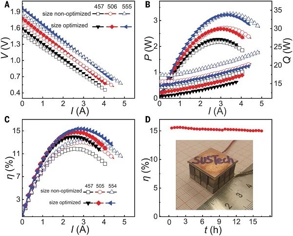 圖4、使用PbTe制備的熱電發(fā)電器件的熱電性能