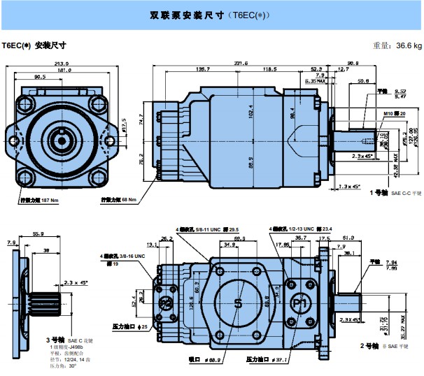 T6ec系列葉片泵是高壓力、低噪音、高效率的定量葉片泵。 丹尼遜油泵具有工作壓力高,可以達(dá)到275Bar,如降低工作壓力的使用,還可以延長(zhǎng)油泵的工作壽命!容積效率高,由此可以提高生產(chǎn)率,減少發(fā)熱和降低液壓設(shè)備的運(yùn)行成本。機(jī)械效率高,從而減少了能量的消耗。轉(zhuǎn)速范圍寬,轉(zhuǎn)速范圍是600---2800rpm,可以優(yōu)化工作狀態(tài),降低噪音??刮廴灸芰?qiáng),丹尼遜油泵采用的是雙唇結(jié)構(gòu)的葉片,具有 強(qiáng)的抗污染能力,使用壽命長(zhǎng)。適應(yīng)液壓介質(zhì)的粘度范圍大,能在低溫下啟動(dòng)和高溫下運(yùn)行,能提供高壓力,噪聲低,而且容積效率高