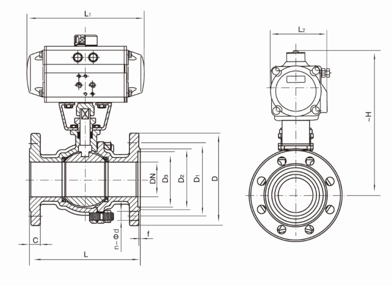 采用新型系列GT型氣動(dòng)執(zhí)行器,有雙作用式和單作用式(彈簧復(fù)位),齒輪齒條傳動(dòng),安全可靠;大口徑閥門采用系列AW型氣動(dòng)執(zhí)行器拔叉式傳動(dòng),結(jié)構(gòu)合理,輸出扭矩大,有雙作用式和單作用式。