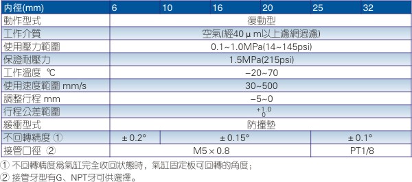 7、氣缸兩側有兩組進、排氣口供實際需要選用;