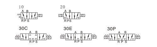 4、安裝時(shí)注意氣體流動(dòng)方向,P為進(jìn)氣口、A(B)為工作口、R(S)為排氣口;