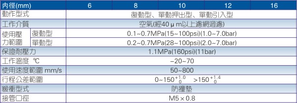 7、Φ4缸徑氣缸負(fù)載須與氣缸同軸,避免側(cè)向負(fù)載,否則活塞桿會(huì)彎曲變形且損壞桿端螺紋。單動(dòng)型不可在回程時(shí)加載;