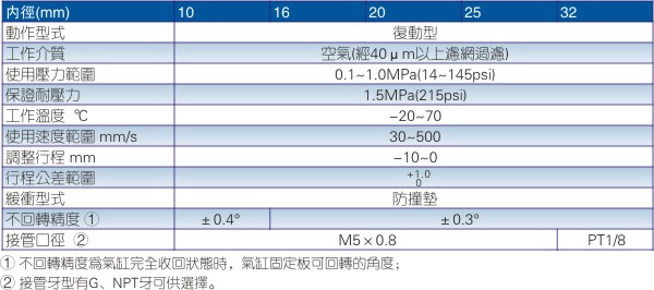 6、因氣缸前蓋及活塞均較短, 般行程不可選擇太大;