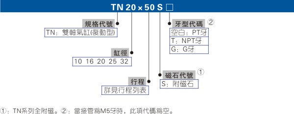 6、本系列氣缸標準配置為附磁型,無不附磁型可選。