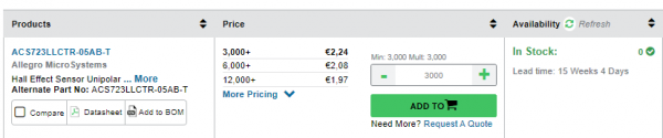 Allegro ACS712為工業(yè)、商業(yè)和通信系統(tǒng)中的交流或直流電流傳感提供經(jīng)濟(jì)和精確的解決方案。設(shè)備包允許客戶輕松實(shí)現(xiàn)。典型應(yīng)用包括電機(jī)控制、負(fù)載檢測(cè)和管理、開關(guān)電源和過電流故障保護(hù)。該裝置不適用于汽車應(yīng)用。該裝置由精密、低偏移、線性霍爾電路組成,其銅導(dǎo)電路徑位于模具表面附近。流過銅傳導(dǎo)路徑的外加電流產(chǎn)生磁場(chǎng),霍爾集成電路將磁場(chǎng)轉(zhuǎn)換成比例電壓。通過磁信號(hào)與霍爾傳感器的接近,優(yōu)化了器件精度。低偏置、斬波穩(wěn)定的BiCMOS霍爾集成電路提供精確的比例電壓,在封裝后對(duì)其進(jìn)行編程以保證精度