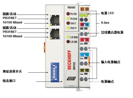 總線耦合器能自動識別所連接的端子模塊,并自動將輸入/輸出分配到過程映像區(qū)的字中。BK9103 總線耦合器支持 10 Mbit/s 和 100 Mbit/s 以太網(wǎng)。通過 個普通的 RJ 45 接頭連接。在 DIP 開關(可自由選擇起始地址偏移量)上設定 IP 地址。在有 DHCP(用于分配邏輯 IP 地址到物理節(jié)點地址 [MAC-ID] 的服務協(xié)議)的網(wǎng)絡中,總線耦合器從 DHCP 服務器獲得 IP 地址。