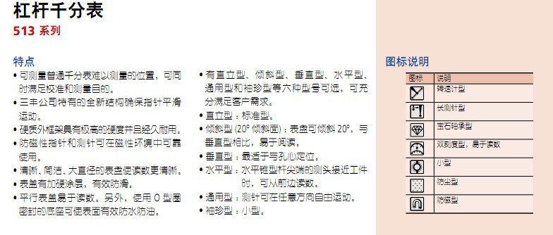 日本原裝三豐杠桿千分表水平型/公制型513-424E