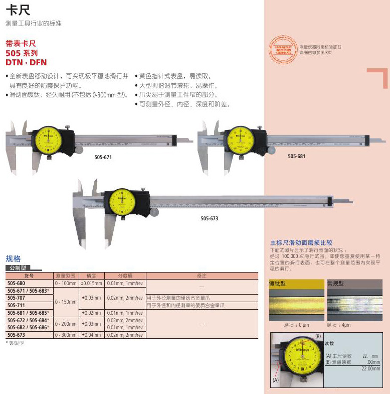 • 滑動(dòng)面鍍鈦,經(jīng)久耐用 (不包括 0-300mm型)。