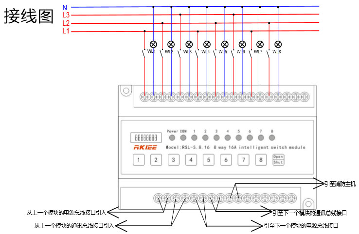 本產(chǎn)品為導(dǎo)軌式安裝,含8路智能繼電器,每回路可獨(dú)立控制3500W燈具的開(kāi)關(guān),帶應(yīng)急按鍵,LED燈時(shí)時(shí)指示各個(gè)回路開(kāi)關(guān)狀態(tài),可設(shè)置為互鎖控制4組窗簾開(kāi)合;