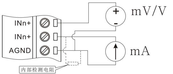 電壓信號與電流信號可以直接接入模塊檢測,采集電流需要注意的是在定貨時需告知模塊用于采集電流信號,這樣模塊在出廠時會在模塊內(nèi)部放置高精度電流檢測電阻且出廠時用標(biāo)準電流信號校準。