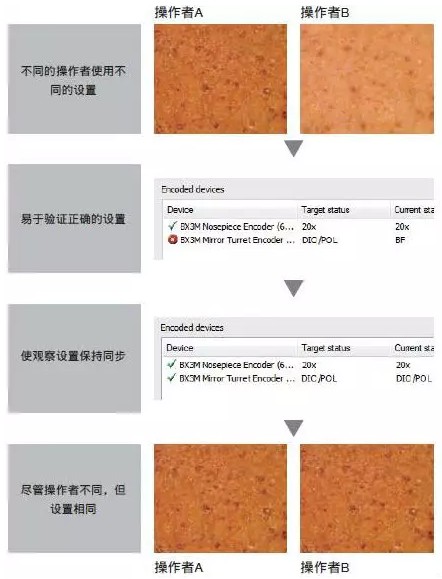 BX53M采用了新的編碼功能,將顯微鏡的硬件設(shè)置與奧林巴斯Stream圖像分析軟件整合在***起。觀察方法、照明強度和物鏡位置全都記錄在軟件和/或手動控制器里。編碼功能使顯微鏡設(shè)置能夠與每幅圖像***起自動保存,從而使此后還原設(shè)置,以及為報表提供文檔記錄更加方便。既節(jié)省了操作者的時間,又程度減小了使用不正確設(shè)置的概率。當(dāng)前的觀察設(shè)置總是清晰地顯示在手動控制器和軟件上。