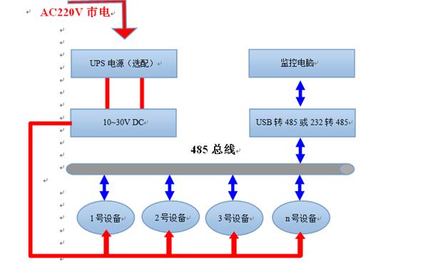 寬電壓電源輸入10~30V均可。485信號(hào)線接線時(shí)注意AB兩條線不能接反,總線上多臺(tái)設(shè)備間地址不能沖突。