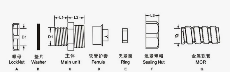 產(chǎn)品材質(zhì):A.C.F部位采用優(yōu)質(zhì)加厚型鋅合金制成、B.E部分采用丁晴橡膠制成、D為鐵皮制成
