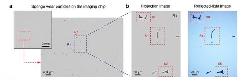 日常使用的清潔海綿由三聚氰胺和甲醛的聚合物制成,在使用過程中,會磨損產(chǎn)生環(huán)境微塑料纖維(MPFs)。蘇宇老師和其合作者購買了三個知名品牌的清潔海綿,反復(fù)在不同粗糙度的金屬表面摩擦,通過非接觸亞微米分辨紅外拉曼同步測量系統(tǒng)—mIRage等多種技術(shù)手段表征了海綿的結(jié)構(gòu)組成和釋放的MPF。結(jié)果發(fā)現(xiàn),海綿的密度對微塑料釋放有顯著的影響,密度越大,微塑料纖維的釋放量越少。