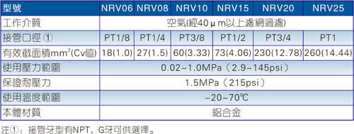 亞德客AirTAC NRV系列單向閥