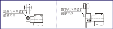 1、動(dòng)作方向可變化(只針對(duì)標(biāo)準(zhǔn)型,大角度型無(wú)此項(xiàng))