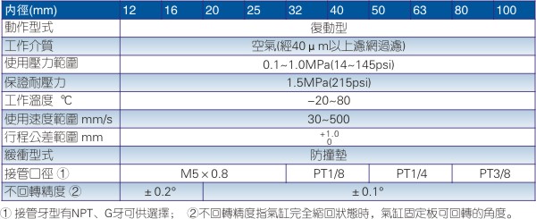 1、執(zhí)行JIS標(biāo)準(zhǔn),帶雙導(dǎo)桿型結(jié)構(gòu);