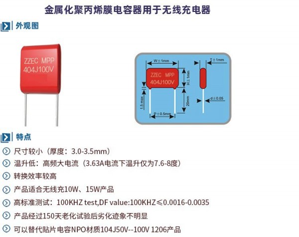 無(wú)線(xiàn)充專(zhuān)用CBB電容 ZZEC 404J100V P=15