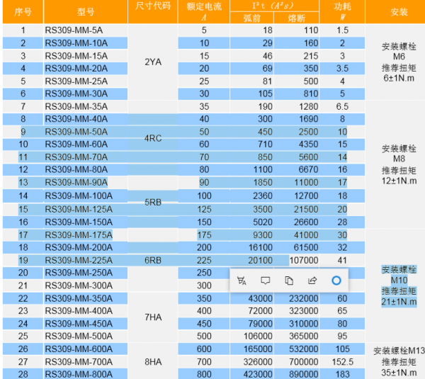 中熔RS309 - MM 圓管螺栓連接式快速熔斷器