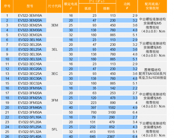 中熔EV322系列熔斷器