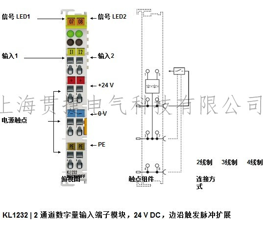 KL1232 數(shù)字量輸入端子模塊從處理層獲得二進(jìn)制控制信號(hào),并以電氣隔離的形式將這些信號(hào)傳輸?shù)礁邔拥淖詣?dòng)化單元。KL1232 有 個(gè)輸入回路,用于擴(kuò)展在上升沿觸發(fā)時(shí)的脈沖信號(hào), 長為 100 ms。 每個(gè)總線端子模塊含有 2 個(gè)通道,每個(gè)通道都有 個(gè) LED 用來顯示其信號(hào)狀態(tài)。KL1232 特別適用于記錄處理時(shí)間大于信號(hào)長度的控制系統(tǒng)中的 短信號(hào)。