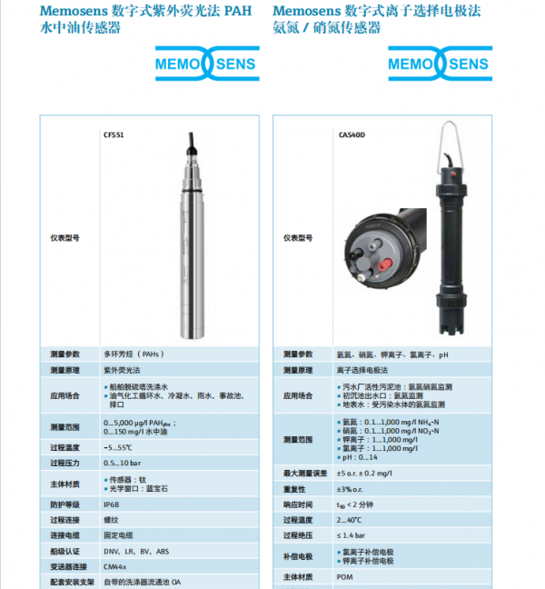 E+H 熒光法PAH水中油CFS51 離子法氨氮 硝氮CAS40D探頭