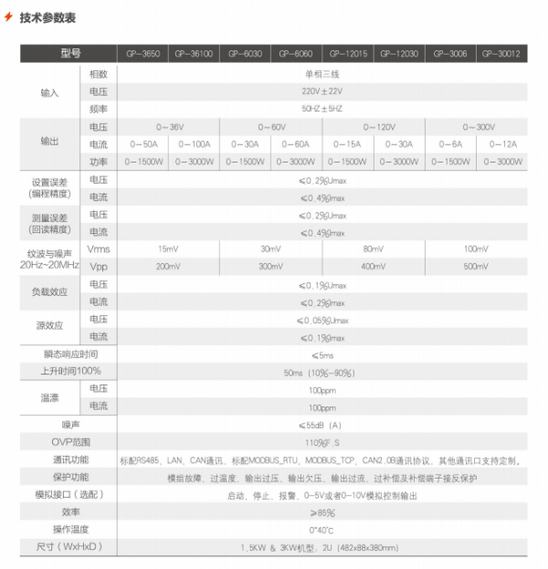 GP(1~3KW)系列直流穩(wěn)壓電源技術(shù)參數(shù)表: