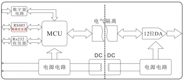 DAM-DA系列產品實現(xiàn)接收主機通過RS-232/RS-485接口給模塊發(fā)送的命令,然后通過隔離轉換成模擬信號,用以控制遠程設備。DAM系列產品可應用在RS-232/RS-485總線工業(yè)自動化控制系統(tǒng),可以輸出4~20mA,0~5V,0~10V等標準信號輸出,用來控制工業(yè)現(xiàn)場的執(zhí)行設備。