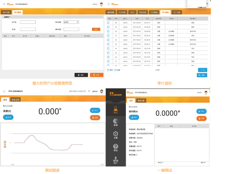 對(duì)儀器進(jìn)行的有效操作后臺(tái)都會(huì)記錄且不可刪除;數(shù)據(jù)儲(chǔ)存時(shí)同時(shí)儲(chǔ)存測試日期、操作人、環(huán)境溫度等內(nèi)容。