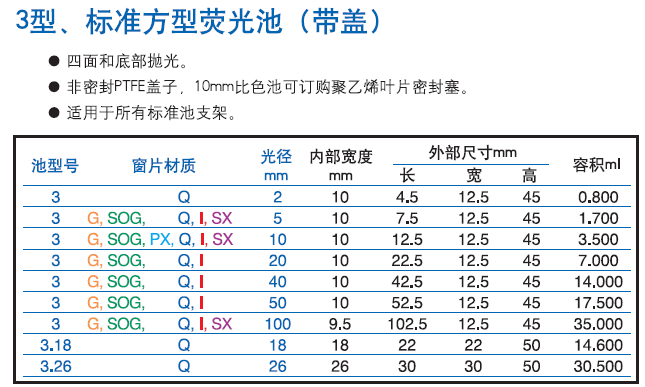 標(biāo)準(zhǔn)熒光比色皿Type 3,23
