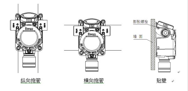 RBK-6000-ZL30探測器安裝方式可采用抱管裝、支架安裝或貼壁安裝,應確保安裝牢固可靠。